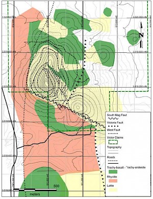 Further back in history, the area around and immediately south of the project area underwent mining activity during the 16th or 17th century, in particular for the turquoise. Spanish explorers also prospected the area targeting gold.GMV Minerals acquired 100% of the leasehold interest in the Mexican Hat Property by way of an assignment agreement with the previous lessee and the underlying claim owner. The Mexican Hat property received considerable exploration between 1989 and 2004, most notably by Placer Dome (USA) between the years 1989-1992 when they drilled 137 holes totaling 18,939 metres (62,120 ft). Overall there are more than 180 drill holes in historical data associated with the property.